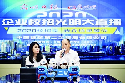 6月(yue)9日下午,“2020企業校招光明大(da)(da)(da)直(zhi)播(bo)”第(di)(di)六場走進位于北京(jing)的中(zhong)國建(jian)筑第(di)(di)二(er)工(gong)程局有限公司(以下簡稱“中(zhong)建(jian)二(er)局”),并邀請常年向中(zhong)建(jian)二(er)局輸送(song)畢(bi)業生的哈爾濱工(gong)業大(da)(da)(da)學和北京(jing)交通大(da)(da)(da)學有關負責人(ren)通過大(da)(da)(da)直(zhi)播(bo)平臺現(xian)場提(ti)供(gong)就業指導。截至當天(tian)下午6點,直(zhi)播(bo)總(zong)觀看(kan)(kan)量突破112萬,其中(zhong)光明網KK直(zhi)播(bo)賬號總(zong)觀看(kan)(kan)量超91萬人(ren)次(ci)。