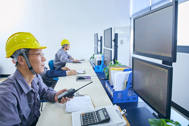 工作人員在位于浙江杭州的傳化化學大江東生產基地遠程控制和監控硅油產品的生產流程(4月1日攝)。