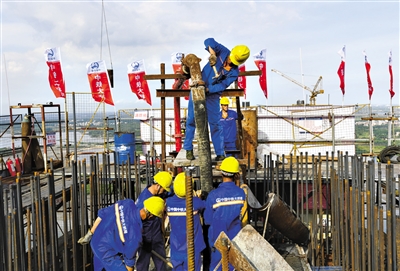7月18日,中鐵大橋局施工人員在湛江調順跨海大橋西主塔左幅進行封頂混凝土澆筑。當日,由中鐵大橋局承建的湛江調順跨海大橋西主塔左右兩幅成功封頂,該橋東西兩座主塔已全部完成封頂,預計年底合龍。