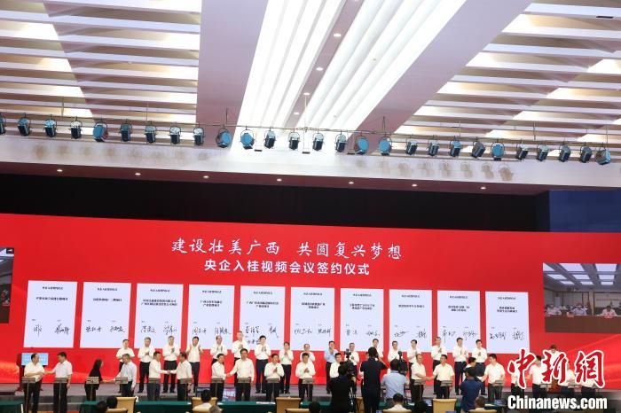 當(dang)天會(hui)議(yi)在北(bei)京和(he)(he)廣(guang)(guang)西(xi)(xi)南(nan)寧(ning)設(she)立(li)主會(hui)場(chang),并在72家央企(qi)總(zong)部(bu)及(ji)廣(guang)(guang)西(xi)(xi)14個市、71個縣設(she)立(li)分會(hui)場(chang)。本次簽約采(cai)取現場(chang)簽約和(he)(he)“云”簽約兩(liang)種(zhong)方(fang)(fang)式進(jin)行。其中,廣(guang)(guang)西(xi)(xi)壯族(zu)自治區人民政府(fu)與(yu)南(nan)方(fang)(fang)電網(wang)、南(nan)方(fang)(fang)航(hang)空(kong)、中廣(guang)(guang)核、中國融(rong)通集(ji)團(tuan)南(nan)部(bu)區域管(guan)理公司(si)、中核集(ji)團(tuan)等30個中央企(qi)業總(zong)部(bu)簽署合(he)作協議(yi);廣(guang)(guang)西(xi)(xi)桂(gui)冠電力(li)公司(si)等央企(qi)分別與(yu)廣(guang)(guang)西(xi)(xi)方(fang)(fang)面簽署投資合(he)作項目78個,涵蓋(gai)產業類(lei)(lei)、能源類(lei)(lei)、基礎(chu)設(she)施類(lei)(lei)、城市開(kai)發類(lei)(lei)等多個行業和(he)(he)領域。