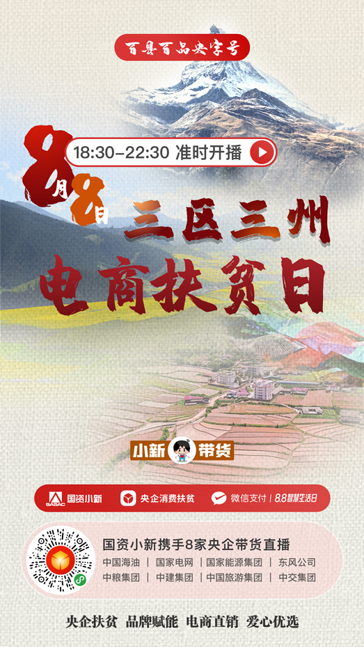 為貫徹落實黨中(zhong)(zhong)央(yang)(yang)(yang)關于決(jue)(jue)(jue)戰(zhan)(zhan)決(jue)(jue)(jue)勝(sheng)脫貧(pin)(pin)攻堅(jian)決(jue)(jue)(jue)策部署和(he)中(zhong)(zhong)央(yang)(yang)(yang)企(qi)(qi)業決(jue)(jue)(jue)戰(zhan)(zhan)決(jue)(jue)(jue)勝(sheng)脫貧(pin)(pin)攻堅(jian)視頻會議(yi)精神,進一步在消費(fei)扶(fu)貧(pin)(pin)工作中(zhong)(zhong)發揮好國(guo)(guo)資央(yang)(yang)(yang)企(qi)(qi)的平臺(tai)優勢、資源優勢,國(guo)(guo)務院(yuan)國(guo)(guo)資委免费(fei)菠萝视频app下(xia)载、中(zhong)(zhong)央(yang)(yang)(yang)企(qi)(qi)業電(dian)商聯(lian)(lian)盟、中(zhong)(zhong)央(yang)(yang)(yang)企(qi)(qi)業媒體聯(lian)(lian)盟聯(lian)(lian)合(he)發起(qi)“三(san)(san)區(qu)三(san)(san)州(zhou)電(dian)商扶(fu)貧(pin)(pin)日”,并在國(guo)(guo)務院(yuan)國(guo)(guo)資委科技創新和(he)社(she)會責任(ren)局、宣傳局的指導下(xia),聯(lian)(lian)合(he)國(guo)(guo)家電(dian)網(wang)電(dian)商公司(si)、騰訊微(wei)信,定于8月8日18:30到22:30,舉辦(ban)“百(bai)縣百(bai)品央(yang)(yang)(yang)字號——‘三(san)(san)區(qu)三(san)(san)州(zhou)’電(dian)商扶(fu)貧(pin)(pin)日”直播帶貨活(huo)動。該(gai)活(huo)動將為“三(san)(san)區(qu)三(san)(san)州(zhou)”搭建起(qi)線(xian)上(shang)銷(xiao)售(shou)渠道,通(tong)過央(yang)(yang)(yang)企(qi)(qi)消費(fei)扶(fu)貧(pin)(pin)電(dian)商平臺(tai)、微(wei)信小(xiao)程序直播平臺(tai)將8個地區(qu)的特產(chan)好物銷(xiao)往全國(guo)(guo)各地,提升當(dang)地特產(chan)品牌的認知度和(he)附加值,鞏固脫貧(pin)(pin)成果,決(jue)(jue)(jue)勝(sheng)全面小(xiao)康。