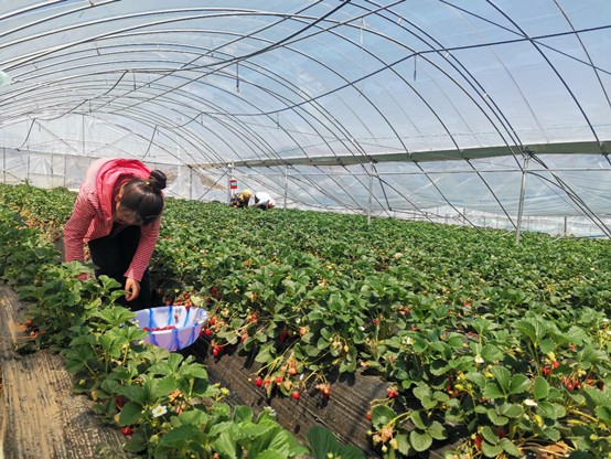 圖說:普格縣村戶在草莓大棚采摘制作草莓醬的新鮮草莓。