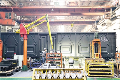 中車齊車、中國一重所在地齊齊哈爾市,上半年GDP同比增長0.7%,在黑龍江省排名第一,同比全國、全省高出2.3%、5.6%。圖為中車齊車公司生產車間,工人在生產作業。