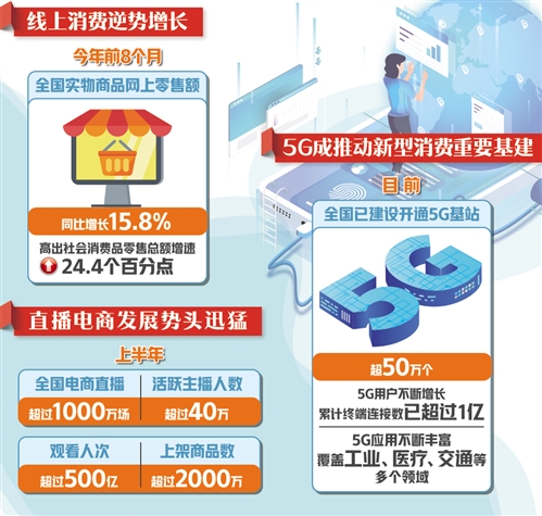 新型(xing)消費以新一(yi)代信息基礎設施(shi)為重(zhong)(zhong)要依(yi)托,加快信息基礎設施(shi)建(jian)設成為重(zhong)(zhong)要發力點。其中,5G是推(tui)動新型(xing)消費的重(zhong)(zhong)要基建(jian)。工(gong)業(ye)(ye)和信息化部信息技術發展司負(fu)責人李穎表示(shi),目前,全國(guo)已建(jian)設開通(tong)5G基站超50萬個,5G用戶不(bu)斷增長(chang),累計終端連(lian)接數已超1億,5G應用不(bu)斷豐富,覆蓋工(gong)業(ye)(ye)、醫療、交通(tong)等多個領域。