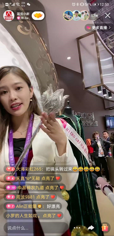 直播中展示創下吉尼斯世界紀錄「鑲嵌最多鉆石寶石權杖」的鉆石寶石權杖