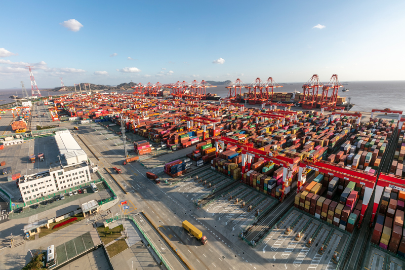 這是11月3日拍攝的上海洋山港集裝箱碼頭。