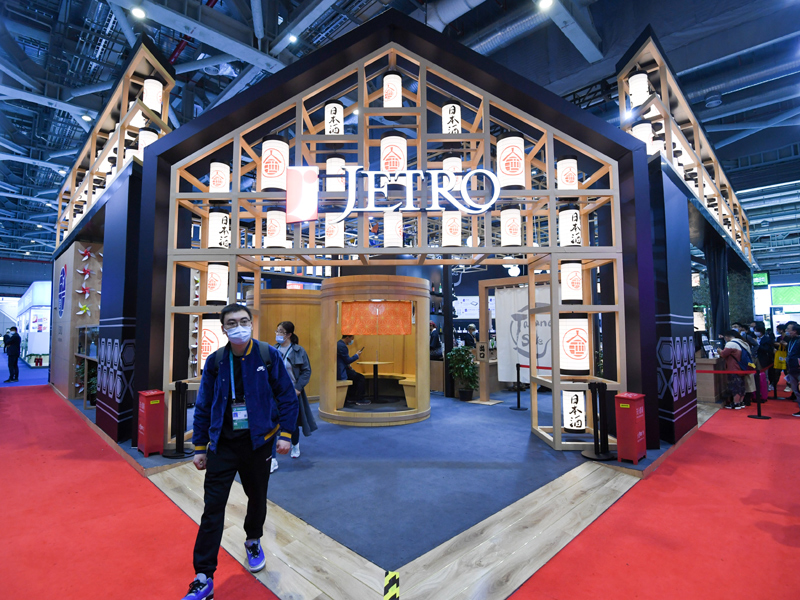 11月10日,觀眾從第三屆進博會食品及農產品展區日本貿易振興機構展臺走出。