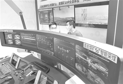 在2020中國5G+工業互聯網成果展上,參觀者在了解一套5G智能采煤系統。