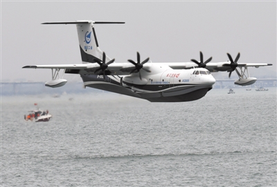 7月26日,中國自主研制的大型水陸兩棲飛機AG600在山東青島團島海域成功實現海上首飛。