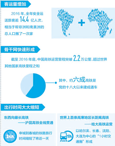 編織一張密度(du)適宜的(de)(de)高(gao)(gao)鐵(tie)(tie)網絡(luo),造福盡可能多的(de)(de)民眾(zhong)。十八大以(yi)來(lai),我國(guo)(guo)(guo)高(gao)(gao)鐵(tie)(tie)版圖不(bu)(bu)斷延伸:2013年(nian)(nian)(nian)(nian)(nian)7月,穿越(yue)江南水鄉的(de)(de)寧杭高(gao)(gao)鐵(tie)(tie)開通(tong);2014年(nian)(nian)(nian)(nian)(nian)6月,世界上(shang)一次性建(jian)成通(tong)車(che)里(li)(li)程最長(chang)的(de)(de)高(gao)(gao)速鐵(tie)(tie)路蘭新高(gao)(gao)鐵(tie)(tie)建(jian)成通(tong)車(che);2016年(nian)(nian)(nian)(nian)(nian)12月,滬昆高(gao)(gao)鐵(tie)(tie)全(quan)線通(tong)車(che),彩(cai)云(yun)之南不(bu)(bu)再“邊緣”。截至(zhi)2016年(nian)(nian)(nian)(nian)(nian)底,中國(guo)(guo)(guo)高(gao)(gao)鐵(tie)(tie)運(yun)營里(li)(li)程突破(po)2.2萬(wan)公(gong)里(li)(li),超過世界其他國(guo)(guo)(guo)家高(gao)(gao)鐵(tie)(tie)里(li)(li)程之和,除幾條線路外,2004年(nian)(nian)(nian)(nian)(nian)提出的(de)(de)“四縱四橫”高(gao)(gao)鐵(tie)(tie)網已(yi)全(quan)部建(jian)成。根據(ju)2016年(nian)(nian)(nian)(nian)(nian)7月新修訂的(de)(de)國(guo)(guo)(guo)家《中長(chang)期(qi)鐵(tie)(tie)路網規(gui)劃》(2016-2030年(nian)(nian)(nian)(nian)(nian)),預計到2020年(nian)(nian)(nian)(nian)(nian),全(quan)國(guo)(guo)(guo)高(gao)(gao)速鐵(tie)(tie)路將(jiang)(jiang)增加到3萬(wan)公(gong)里(li)(li)。今年(nian)(nian)(nian)(nian)(nian)繼續保持高(gao)(gao)鐵(tie)(tie)網絡(luo)快速建(jian)設勢(shi)頭,就在上(shang)月初(chu),寶蘭高(gao)(gao)鐵(tie)(tie)通(tong)車(che),將(jiang)(jiang)使千年(nian)(nian)(nian)(nian)(nian)絲(si)路煥發更加蓬(peng)勃的(de)(de)生(sheng)機。不(bu)(bu)久后(hou),我們還(huan)將(jiang)(jiang)見證張呼客專馳騁于遼闊的(de)(de)大草原,而(er)西成高(gao)(gao)鐵(tie)(tie)也(ye)將(jiang)(jiang)讓千年(nian)(nian)(nian)(nian)(nian)蜀道不(bu)(bu)再艱難。