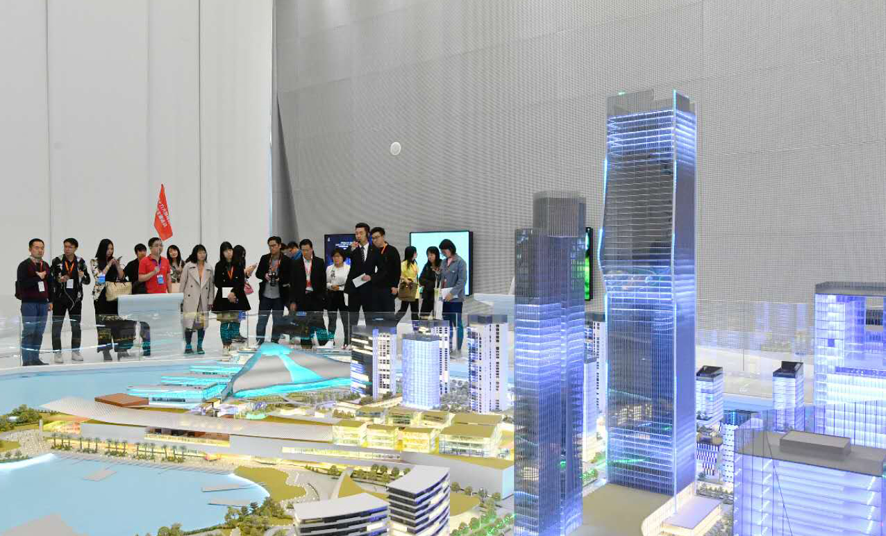 觀看招商(shang)局集團前(qian)海蛇口自(zi)貿區規劃模型(xing)。