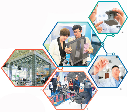 圖①:2017年,上海交大材料科學與工程學院教授王浩偉領銜的科研團隊研制出超強納米陶瓷鋁合金,這種新材料不僅重量輕,而且強度和剛度甚至超過了“太空金屬”鈦合金,有望帶動航空、汽車、高鐵行業步入更輕、更節能的新材料時代。 (新華社記者 丁 汀攝)