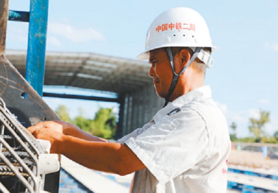 當“瀾湄記(ji)者(zhe)團(tuan)”來到(dao)萬象郊區(qu)的中老鐵(tie)路(lu)施工(gong)現場時,立刻就被現場一派熱火朝天的景象所感染(ran)。一座(zuo)座(zuo)高聳(song)結(jie)實(shi)的橋梁墩臺(tai)整(zheng)整(zheng)齊齊地排(pai)列著,由南向(xiang)北延伸而去。架(jia)梁工(gong)作正在(zai)有(you)條不(bu)紊地進行著。“老撾多(duo)山區(qu),地形復(fu)雜,地勢險要,這對于(yu)鐵(tie)軌的設計與建造(zao)提出了更高的要求。”中鐵(tie)二局六標二分部項目經理胡彬告(gao)訴(su)本(ben)報記(ji)者(zhe),在(zai)中老鐵(tie)路(lu)沿線(xian),62.7%以上的路(lu)段都為橋梁和(he)隧道。