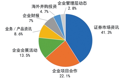 《報告》研究發現(xian),2018年(nian)上(shang)半年(nian)外(wai)(wai)媒關于中央企(qi)業的報道主(zhu)要(yao)集中在證券市(shi)場資訊、企(qi)業項(xiang)目合作、會展活動等(deng)方面。其中,2018年(nian)上(shang)半年(nian)國(guo)際環境發生(sheng)很大變化,全球貿易格局突(tu)變,企(qi)業海外(wai)(wai)投(tou)資并購、項(xiang)目合作及實施(shi)情況較受外(wai)(wai)媒關注。