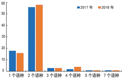 《報告》對中(zhong)(zhong)央企業(ye)(ye)(ye)(ye)多(duo)語(yu)(yu)種網站進行了統計。截至2018上半年(nian),96家(jia)中(zhong)(zhong)央企業(ye)(ye)(ye)(ye)共(gong)86家(jia)開通(tong)多(duo)語(yu)(yu)種官(guan)網,開通(tong)率(lv)達89.6%。其中(zhong)(zhong)以覆蓋(gai)英文、中(zhong)(zhong)文(繁體(ti))2個(ge)語(yu)(yu)種為(wei)(wei)主,開通(tong)企業(ye)(ye)(ye)(ye)數為(wei)(wei)58個(ge)。與2017年(nian)同期(qi)相比,中(zhong)(zhong)央企業(ye)(ye)(ye)(ye)開通(tong)4個(ge)語(yu)(yu)種官(guan)網的增(zeng)加(jia)2家(jia),開通(tong)2個(ge)語(yu)(yu)種官(guan)網的增(zeng)加(jia)2家(jia)。