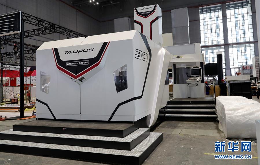 10月30日,來自德國的進博會最大展品——“金牛座龍門銑”在進行安裝調試。(新華社記者 方喆 攝)