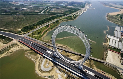 白浪河大橋上的摩天輪。資料照片