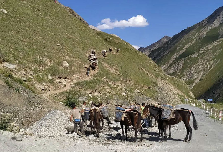 根據方案,項目(mu)需要新建高壓線路和變電(dian)站近(jin)百(bai)公里,其中在(zai)山(shan)(shan)區(qu)(qu)的(de)鐵塔就有300多座,沒有便(bian)道(dao)運輸物資材料,他們(men)就自己修(xiu);天山(shan)(shan)道(dao)路陡(dou)峭,不能修(xiu)建施工便(bian)道(dao)或(huo)遇到(dao)極端災害天氣造成道(dao)路中斷,他們(men)就肩扛(kang)馬駝倒(dao)運物料;山(shan)(shan)區(qu)(qu)基(ji)礎基(ji)坑開(kai)挖時遭遇堅硬巖層(ceng)(ceng),狹(xia)小的(de)施工界面無法使(shi)用(yong)破碎(sui)機械周轉,他們(men)便(bian)用(yong)手持電(dian)鎬逐(zhu)層(ceng)(ceng)開(kai)挖。“我們(men)就像是打洞的(de)土(tu)撥鼠。”先(xian)遣隊員、安全主(zhu)管白洪緯調侃道(dao)。