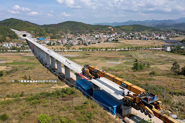 贛深高鐵箱梁架設(陳浩 攝)
