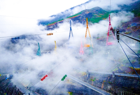 “你看到(dao)云霧中這些彩色的機(ji)械了(le)嗎?這是我(wo)(wo)們白鶴灘水電站(zhan)的纜機(ji)群,是我(wo)(wo)們的‘七(qi)仙女(nv)。”