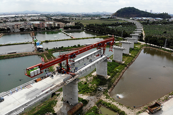 南沙港鐵路項目架梁現場(黃詩偉(wei) 攝)