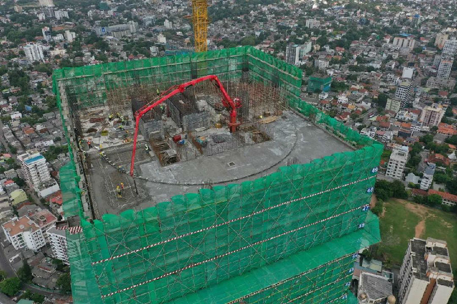2018年底,項(xiang)(xiang)目(mu)團(tuan)隊用36個小時(shi)完成(cheng)了3200立方(fang)米(mi)的(de)超大(da)體積筏板混凝(ning)土(tu)一(yi)(yi)次(ci)性澆筑(zhu)(zhu)施工(gong),成(cheng)功打響了項(xiang)(xiang)目(mu)全(quan)面施工(gong)的(de)第一(yi)(yi)槍。當時(shi)熱火朝(chao)天的(de)施工(gong)場景(jing)令人記憶(yi)猶新。“兩天兩夜(ye),4臺斯里蘭(lan)卡最大(da)的(de)移(yi)動式泵車同時(shi)作業,4家攪拌(ban)站同時(shi)開盤(pan),80臺全(quan)斯里蘭(lan)卡最大(da)的(de)混凝(ning)土(tu)罐車無(wu)間(jian)斷輸(shu)送(song)近550次(ci),全(quan)程穿插使用兩種不同的(de)混凝(ning)土(tu)進行澆筑(zhu)(zhu)……真不敢相信(xin)這一(yi)(yi)切發生在(zai)科倫坡(po)。”葉(xie)路(lu)詩回憶(yi)說。