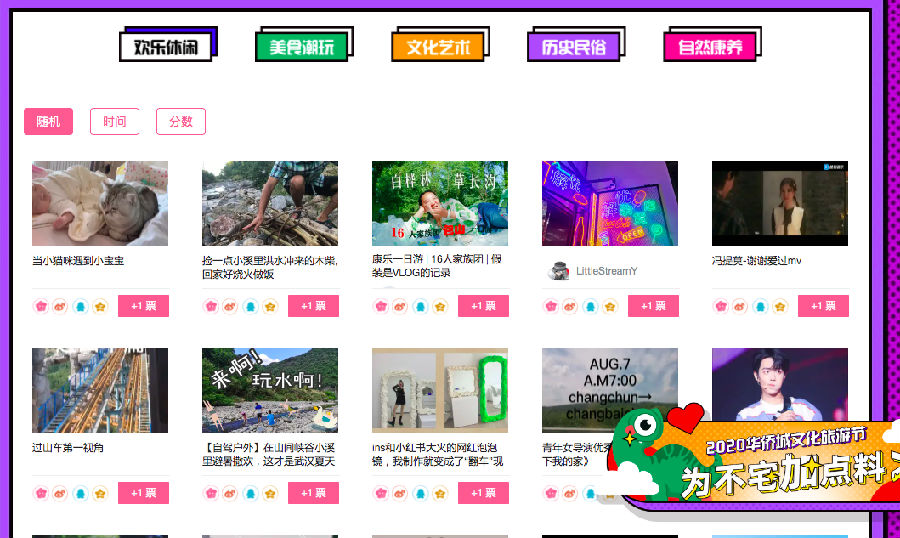 8月12日(ri)(ri),華(hua)僑城(cheng)集團聯(lian)手B站發起2020華(hua)僑城(cheng)文(wen)化旅(lv)游(you)(you)節歡樂(le)“視(shi)”界專(zhuan)項行動(dong)——“夏(xia)日(ri)(ri)不宅宣(xuan)言”B站召集令,邀請網友在華(hua)僑城(cheng)文(wen)化旅(lv)游(you)(you)節看到、感悟(wu)、創作、分享中國(guo)最美好的樣子,用視(shi)頻(pin)展現“不宅”態(tai)度、播(bo)映中國(guo)歡樂(le)。在短(duan)短(duan)兩周的時間內,活動(dong)已觸達(da)上億人次、征集到網友原創視(shi)頻(pin)作品上千支,成為今夏(xia)B站最熱門的夏(xia)日(ri)(ri)活動(dong)之一(yi)。