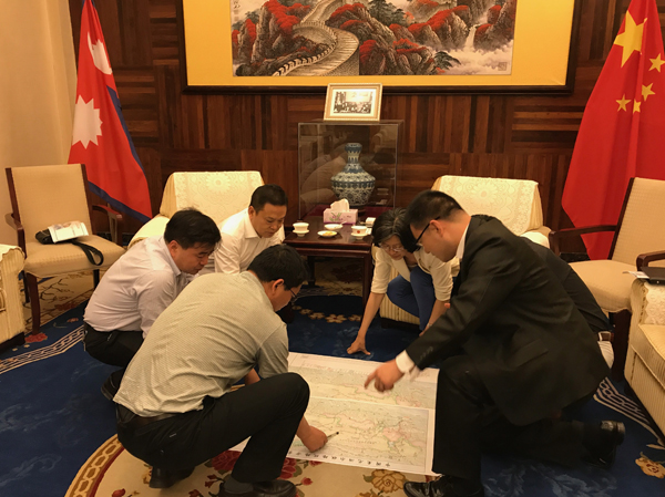 2017年4月,鐵四院副院長朱力爭向中國駐尼泊爾大使于紅匯報方案。