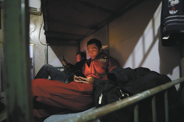 休息時間,固井工程師胡培翻看著手機相冊,心里計算著孩子開學的日子是否能與自己倒休的日子重合。