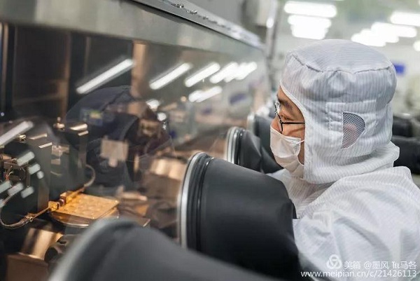 ?2017?年?6?月?29?日,在中國電科38所微波集成中心,吳劍旗正在專心致志處理芯片貼裝問題