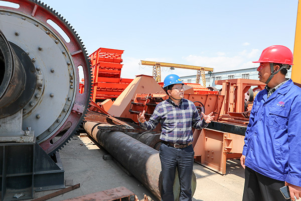 羅登橋(左)在萬礦機械廠了解企業生產情況