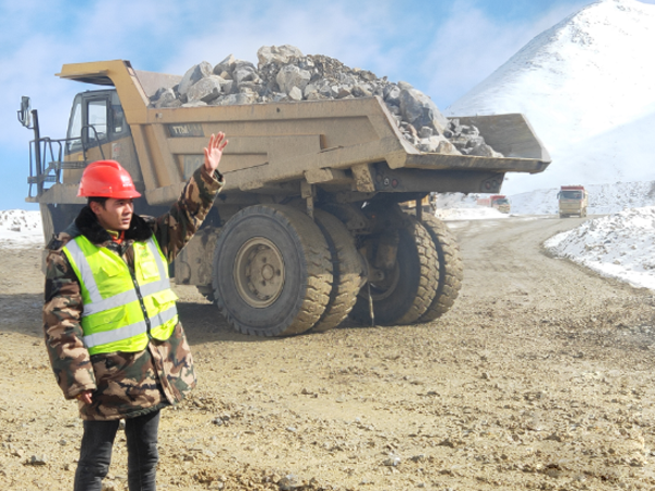 格桑亞杰指揮排土場車輛作業