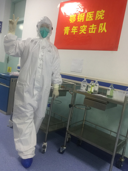 和妻子并肩戰斗在鄂鋼醫院抗疫一線的周擁軍