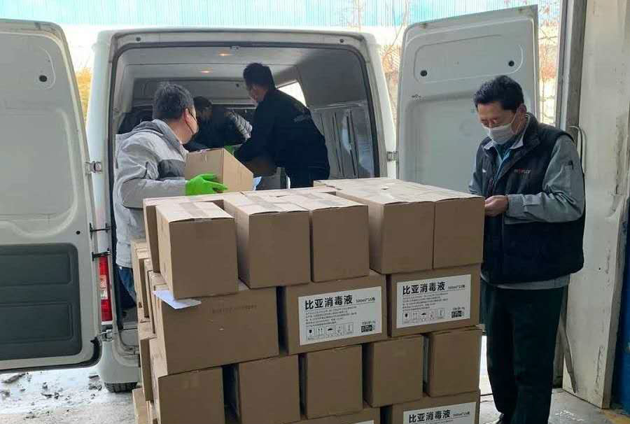 在物資緊缺的(de)(de)(de)情況(kuang)下,志愿(yuan)服(fu)務隊的(de)(de)(de)4名同志于單位附近的(de)(de)(de)公司(si)協調購買了(le)1500瓶消毒(du)液(ye)。他們在寒風中(zhong)等(deng)待(dai)了(le)2個小時后,終于接(jie)到了(le)足數(shu)的(de)(de)(de)消毒(du)液(ye)。