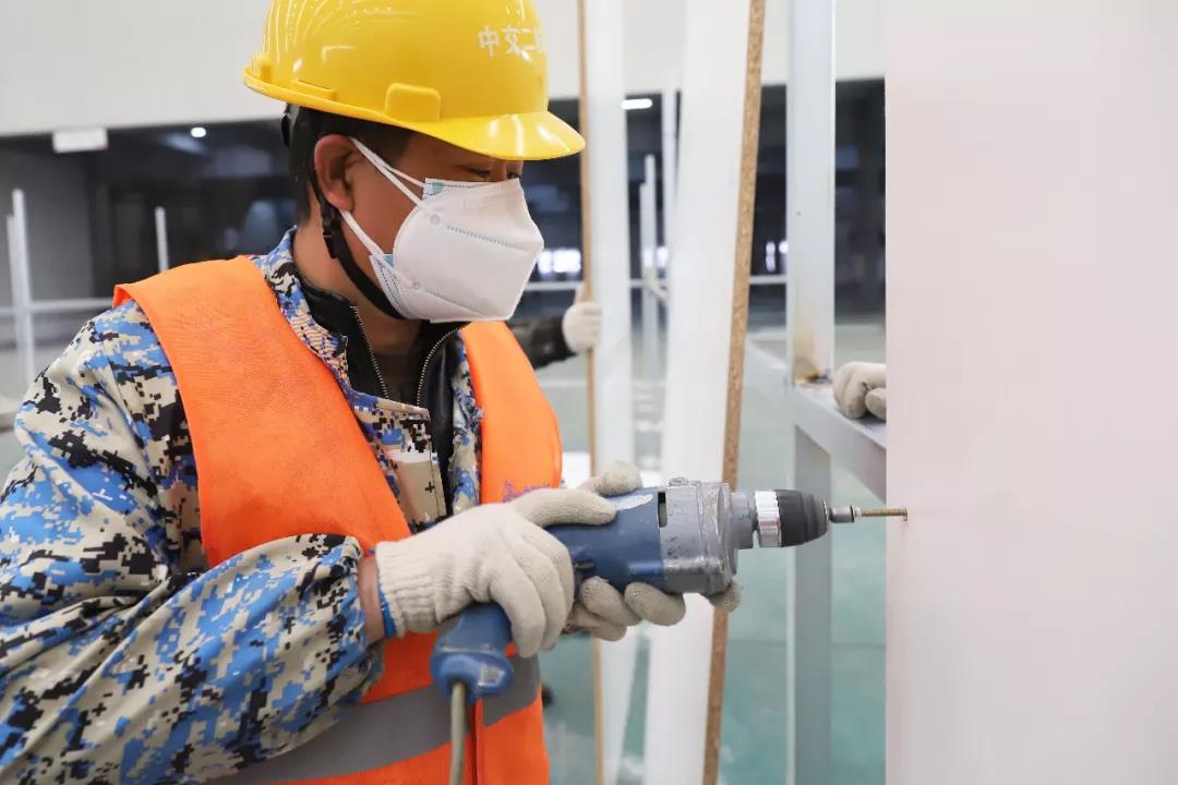 這是一場(chang)與(yu)時(shi)間(jian)賽跑的(de)戰斗,作為現(xian)場(chang)調度總負責人(ren)(ren)的(de)陳林只用了(le)一個小時(shi)就趕到現(xian)場(chang),與(yu)開發區疫情(qing)防控指揮(hui)部進行對(dui)接,和(he)(he)“先遣部隊”實地了(le)解(jie)情(qing)況,快速做(zuo)出(chu)施工(gong)設計、施工(gong)方案,集結武漢(han)及周邊項目(mu)部物(wu)資、設備(bei)、測量和(he)(he)安全等管理人(ren)(ren)員和(he)(he)現(xian)場(chang)施工(gong)人(ren)(ren)員共108名,成立了(le)設計組、材料供應組、隔板安裝(zhuang)組、水(shui)電安裝(zhuang)組、床位安裝(zhuang)組和(he)(he)安全保(bao)障(zhang)組,并(bing)明確到具體責任(ren)人(ren)(ren)。