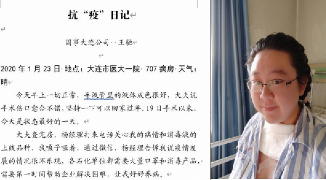 “從來(lai)沒(mei)有(you)感覺(jue)武漢的(de)疫(yi)情離我(wo)如此之近,我(wo)雖然做不(bu)了什么大事,但已(yi)經牽頭負責日(ri)化用品框架協(xie)議兩(liang)年多了,有(you)一些(xie)經驗,雖然說話費勁,但還可以微信聯絡(luo),多一個人(ren)盡一份力總是好的(de)。”這是她在自(zi)己的(de)術(shu)后抗(kang)“疫(yi)”日(ri)記中提到(dao)的(de)。