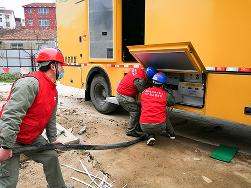 當天(tian),他們就接到(dao)為孝(xiao)感市第一人民醫(yi)院老院區和新院區、孝(xiao)感市中心醫(yi)院等3家(jia)醫(yi)院保電(dian)的(de)任務(wu)。隊員們片(pian)刻(ke)不(bu)停歇,迅速(su)(su)行動,駕(jia)駛(shi)3輛應急發(fa)電(dian)車(che)分別(bie)趕往任務(wu)地點,立(li)即向醫(yi)院了解設備(bei)和負(fu)荷情況,制訂最快(kuai)速(su)(su)、最周密的(de)接入方案,并開始(shi)施放電(dian)纜……很快(kuai),急發(fa)電(dian)車(che)就接入醫(yi)院的(de)供電(dian)系統并開始(shi)運轉,為醫(yi)療救治工作源(yuan)源(yuan)不(bu)斷提(ti)供電(dian)力(li)支(zhi)撐。