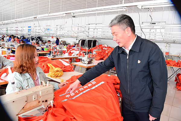 中國鐵建扶貧干部孫潔深入倫比服裝有限公司調研