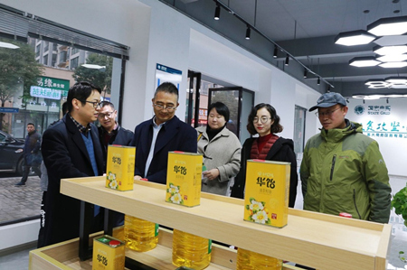謝海紅(左一)在“慧農幫”實體店介紹扶貧產品