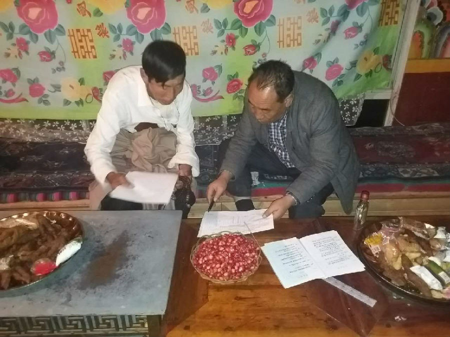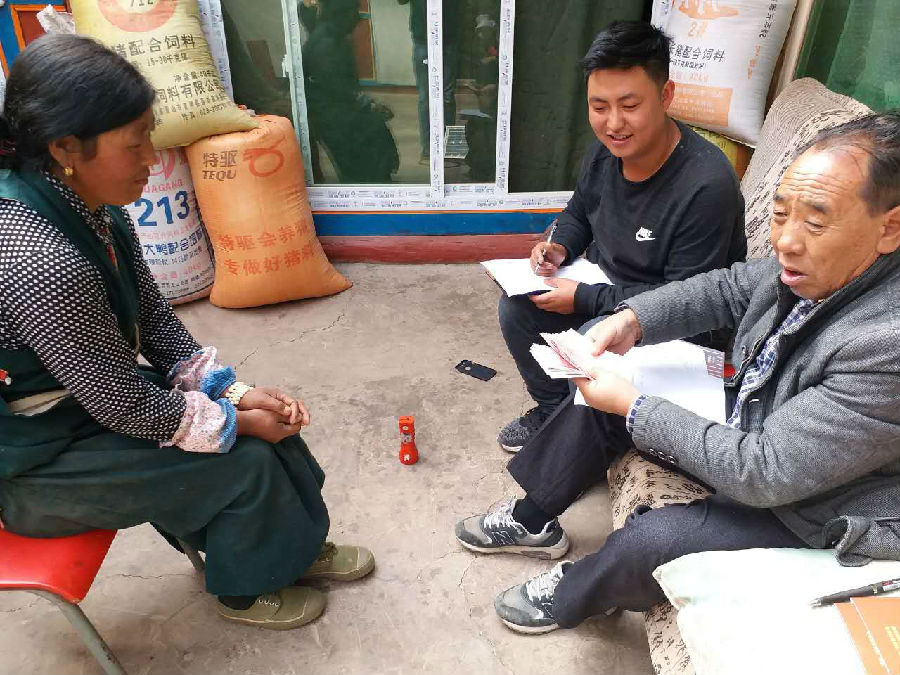 扎多走遍了(le)瓦達(da)村(cun)(cun)(cun)(cun)的(de)每(mei)一座(zuo)山(shan)、每(mei)一條河,詳(xiang)細了(le)解(jie)(jie)瓦達(da)村(cun)(cun)(cun)(cun)的(de)每(mei)個貧(pin)困戶的(de)家庭(ting)情況,收集困難(nan)訴求。他(ta)和村(cun)(cun)(cun)(cun)干部(bu)一起(qi)印發了(le)“便(bian)民(min)服務聯(lian)系(xi)(xi)卡”送給(gei)村(cun)(cun)(cun)(cun)民(min),方便(bian)群眾聯(lian)系(xi)(xi)。他(ta)上山(shan)下溝,挨家逐戶,與村(cun)(cun)(cun)(cun)民(min)拉家常,交朋友(you),了(le)解(jie)(jie)群眾的(de)真實情況。他(ta)視村(cun)(cun)(cun)(cun)民(min)為親人(ren),把村(cun)(cun)(cun)(cun)民(min)的(de)事當成自己的(de)事。通過(guo)收集貧(pin)困戶訴求,扎多了(le)解(jie)(jie)到有部(bu)分貧(pin)困戶存(cun)在發展生(sheng)產資金短缺的(de)難(nan)題,便(bian)主動與甘(gan)孜(zi)縣農村(cun)(cun)(cun)(cun)信用聯(lian)社(she)銜接,幫助貧(pin)困戶完(wan)成貸款(kuan)所需(xu)的(de)各種資料,并協(xie)助縣扶貧(pin)辦、甘(gan)孜(zi)縣農村(cun)(cun)(cun)(cun)信用聯(lian)社(she)發放扶貧(pin)小(xiao)額信貸共200余萬元,有效解(jie)(jie)決貧(pin)困戶發展家庭(ting)牧場(chang)資金短缺難(nan)題。