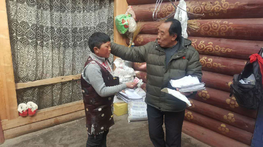 每次到貧困戶(hu)家(jia)(jia)中(zhong)開展工(gong)作,遇到哪家(jia)(jia)有急事(shi)需(xu)要錢(qian),扎多(duo)(duo)都會(hui)從自(zi)己本不寬裕的(de)口袋中(zhong)拿出一(yi)(yi)點來(lai)幫(bang)助他(ta)(ta)們。貧困戶(hu)托瓦措家(jia)(jia)是單(dan)親家(jia)(jia)庭,孩(hai)子在上小學,還有一(yi)(yi)個80多(duo)(duo)歲的(de)老人需(xu)要照顧,生(sheng)活困難。扎多(duo)(duo)了(le)解(jie)情況(kuang)后,就(jiu)經常到他(ta)(ta)家(jia)(jia),鼓勵孩(hai)子努力學習,幫(bang)孩(hai)子檢(jian)查家(jia)(jia)庭作業,了(le)解(jie)近來(lai)的(de)學習情況(kuang)。看到孩(hai)子學習成績進步了(le),扎多(duo)(duo)欣喜地自(zi)費(fei)買來(lai)禮(li)物獎勵給孩(hai)子。