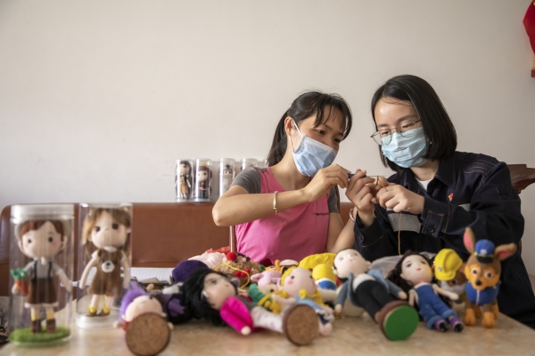 梁曉君到貧困戶家中走訪,了解其自制手工藝品情況。(甄一飛 攝)
