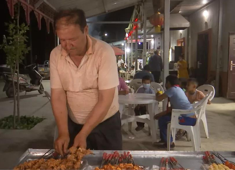 艾海(hai)提·提拉是一(yi)名建檔立卡貧(pin)困(kun)戶,家(jia)中人多地少。買(mai)賀甫熱提經過走訪調查(cha),與村委會商(shang)量后(hou)幫助(zhu)艾海(hai)提在村委會門口開了一(yi)家(jia)烤肉店,現在生意火爆,他的收入也提高了很多。艾合買(mai)提說:“我們這家(jia)店賣烤肉、冷飲(yin)等,一(yi)個月純(chun)收入在6000元左(zuo)右,非常感(gan)謝黨和政府給我們創造了脫(tuo)貧(pin)的條件,感(gan)謝‘鐵姑娘’給我了致富的信心。”