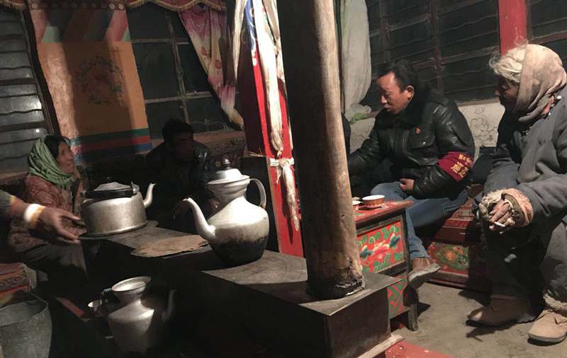 2019年初(chu),日喀則市仲巴(ba)縣出現了(le)(le)持續(xu)的大雪(xue)天氣,降(jiang)雪(xue)量超(chao)出以(yi)往(wang)。連續(xu)的降(jiang)雪(xue)給群(qun)(qun)眾(zhong)(zhong)的生產生活帶來(lai)了(le)(le)嚴重影響,群(qun)(qun)眾(zhong)(zhong)的牲畜死亡率猛(meng)增,一(yi)(yi)些群(qun)(qun)眾(zhong)(zhong)尤其(qi)是孤寡老人(ren)燃(ran)料(liao)短缺,通往(wang)鄉村(cun)的道路被雪(xue)封(feng)住,群(qun)(qun)眾(zhong)(zhong)接二連三(san)報告受(shou)災(zai)情況。羅(luo)(luo)布(bu)頓珠不敢有絲毫懈(xie)怠,親自帶領駐(zhu)村(cun)隊員(yuan)(yuan)及村(cun)“兩委”班子成(cheng)員(yuan)(yuan)走村(cun)入戶,實地查看(kan)群(qun)(qun)眾(zhong)(zhong)受(shou)災(zai)情況。他一(yi)(yi)邊引(yin)導群(qun)(qun)眾(zhong)(zhong)開展自救,一(yi)(yi)邊聯系(xi)清雪(xue)設備,歷時9小(xiao)時,清理積雪(xue)道路近50公(gong)里,通往(wang)鄉村(cun)的道路基(ji)本搶通,為牧民群(qun)(qun)眾(zhong)(zhong)出行提供了(le)(le)安全(quan)保障,確保草料(liao)、糌粑、毛皮(pi)鞋(xie)等救災(zai)物資(zi)順利送到(dao)群(qun)(qun)眾(zhong)(zhong)手中(zhong)。與(yu)此同時,羅(luo)(luo)布(bu)頓珠通過組織(zhi)黨員(yuan)(yuan)捐款(kuan)等途徑籌集(ji)燃(ran)料(liao)資(zi)金,為群(qun)(qun)眾(zhong)(zhong)購買燃(ran)料(liao)和(he)雪(xue)地鞋(xie),解決了(le)(le)群(qun)(qun)眾(zhong)(zhong)的燃(ran)眉之(zhi)急,確保了(le)(le)抗災(zai)各項工作任(ren)務的順利完成(cheng)。
