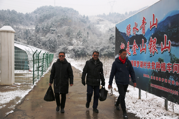 鐵四院扶貧工作隊冒雪巡查種植基地(左為朱浩)