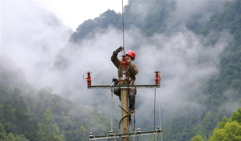 “這幾(ji)個(ge)電(dian)工在桿子(zi)上淋了幾(ji)個(ge)鐘(zhong)頭的雨,喊他們下來(lai)躲雨都不下來(lai)!”作業點附近的村民楊紹蘭很(hen)心疼這些“電(dian)騾子(zi)”。