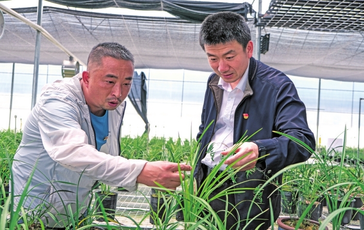 唐寶(右)在維西縣中路鄉蘭花種植基地了解產業發展情況