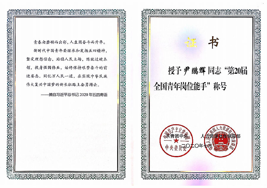 此后,厚(hou)積薄發的尹鵬輝(hui)一次(ci)次(ci)刷(shua)新著(zhu)自己(ji)的成績(ji)。幾(ji)年間,便從一名學(xue)徒工成長(chang)為高級技師(shi)、技能之(zhi)星,獲得全(quan)國能源化學(xue)系統五一勞動獎章、全(quan)國煤炭行業青年崗位能手(shou)、中央企業技術能手(shou)等諸(zhu)多殊榮。