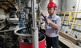 王勝新正在檢修盾構設備。(王慶玉 攝)