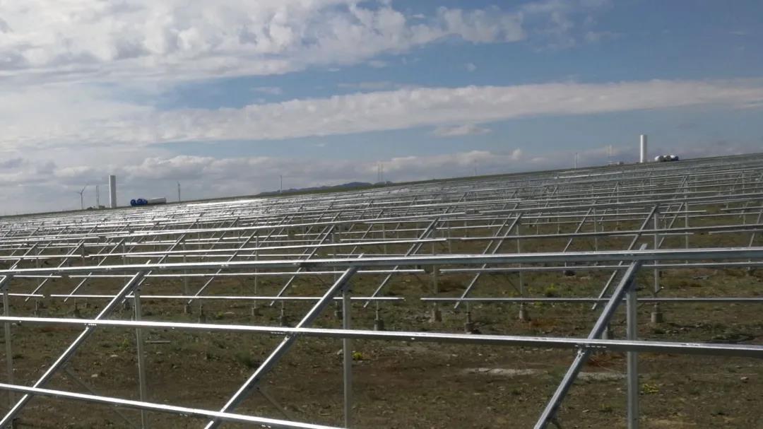300人、20天、12萬(wan)根樁基施工完(wan)成(cheng),新能源(yuan)“追光者(zhe)”們(men)又一次戰山(shan)區、拓(tuo)荒原,將核工業精(jing)神在祖國(guo)的邊(bian)疆建設中踐行。這里是新疆生(sheng)產建設兵(bing)團(tuan)(tuan)第六師北(bei)塔山(shan)牧場,地(di)處中蒙(meng)邊(bian)境線,距離(li)最近(jin)的縣城——昌吉州奇臺縣300公里,中核集團(tuan)(tuan)中核華興承建的北(bei)塔山(shan)150MW光伏(fu)發電項目(mu)就坐落于此。